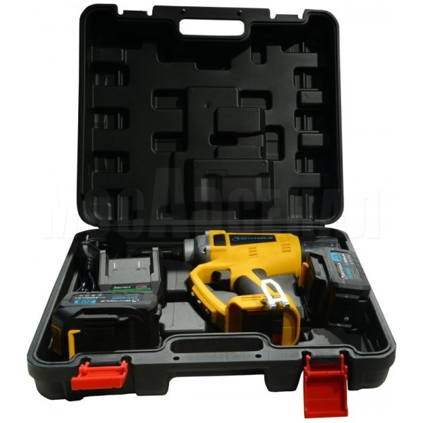 Заклепочник комплектуется двумя мощными аккумуляторами , емкостью 4,0 Ач. и мощностью 20В. Поставляется в пластиковом кейсе. Аккумуляторная база взаимозаменяема со всей новой линейкой аккумуляторного инструмента торговой марки SKytools.