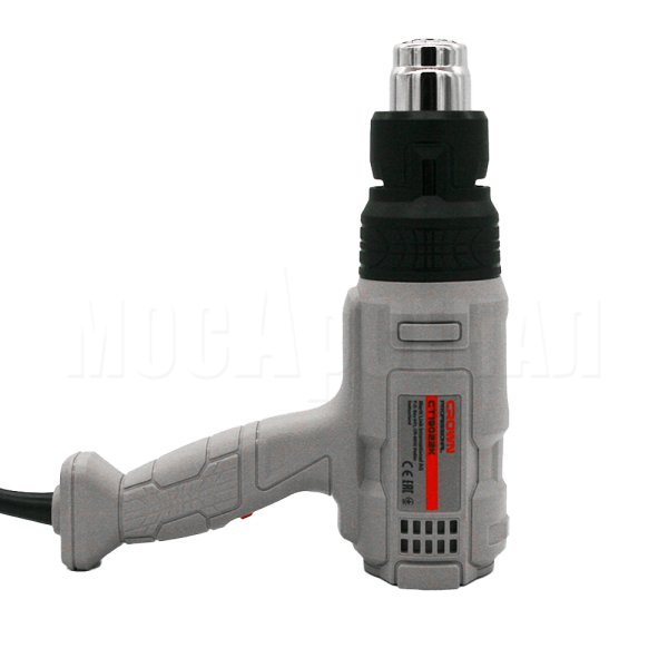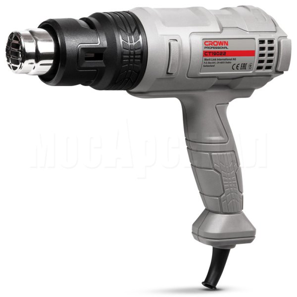 Технический фен CROWN CT19022K - универсальный помощник для множества профессий и работ Мощность 1.800 Вт Надёжный нагревательный элемент - основа из керамического волокна - долговечный нагревательный элемент - керамические изоляторы - защитный термостат Три режима работы - 50°C - 250 л/мин - 100 Вт - 450°C - 250 л/мин - 800 Вт - 550°C - 500 л/мин - 1800 Вт Защитный термостат, в случае перегрева или выхода из строя двигателя, полностью выключает нагреватель Съёмный защитный кожух для увеличения длины сопла во время работы в труднодоступных местах Удобный стационарный режим работы, который пригодится, например, при работе с трубами ПВХ Сопло из нержавеющей стали, Масса 0,7 кг В комплект поставки входит: 4 сопла-насадки, скребок для удаления краски