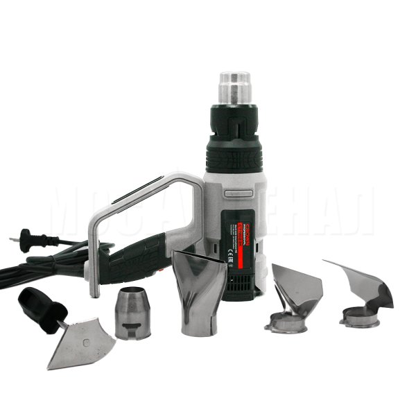 Технический фен - универсальный помощник для множества профессий и работ Мощность 2.000 Вт Надёжный нагревательный элемент - основа из керамического волокна - долговечный нагревательный элемент - керамические изоляторы - защитный термостат Три режима работы с семью (7) ступенями настройки температуры - 50°C - 250 л/мин - 60 Вт - 50-600°C - 250 л/мин - 60-2000 Вт - 50-600°C - 500 л/мин - 120-2000 Вт Регулятор температуры с 7 ступенями Защитный термостат Съёмный защитный кожух для увеличения длины сопла во время работы в труднодоступных местах Удобный стационарный режим работы, который пригодится, например, при работе с трубами ПВХ Сопло из нержавеющей стали Масса 0,9 кг В комплект поставки входит: 4 сопла-насадки, скребок для удаления краски