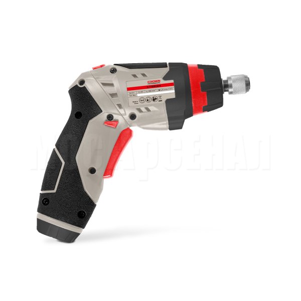 Аккумуляторный шуруповерт(отвертка) CROWN CT22024 MC компактный и удобный инструмент, незаменимый помощник при сборке мебели, ремонте авто и тд Поворотная ручка - нажатие кнопки позволяет повернуть ручку на 90° для возможности работы в труднодоступных местах Шестигранный Держатель инструмента 1/4"подходит для оснастки, оснащенной шестигранным хвостовиком 1/4" и позволяетее быстро менять. Переменный крутящий момент Регулятор крутящего момента позволяет регулировать силу крутящего момента, а также выбрать режим сверления Светодиодный индикатор заряда - Светодиодные индикаторы информируют пользователя об уровне заряда аккумулятора. Поставляется в железной коробке и имеет набор оснастки(30 бит)