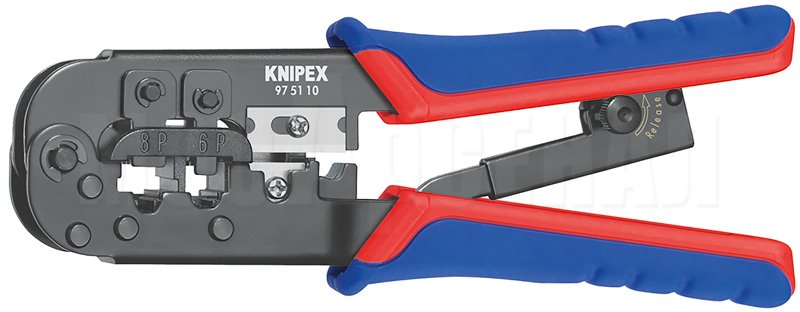 - для опрессовки 6- и 8-полюсных штекеров Western типа RJ 11/12 (ширина 9,65 мм) и типа RJ 45 (ширина 11,68 мм)