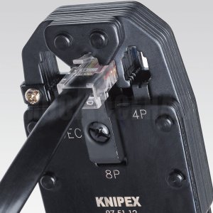 - для опрессовки 4-, 6- и 8-полюсных штекеров Western типа RJ 10 (ширина 7,65 мм), типа КО 11/12 (ширина 9,65 мм) и типа RJ 45 (ширина 11,68 мм)