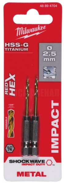 Сверло по металлу Milwaukee RedHEX HSS-G TiN 2.5мм (2шт)