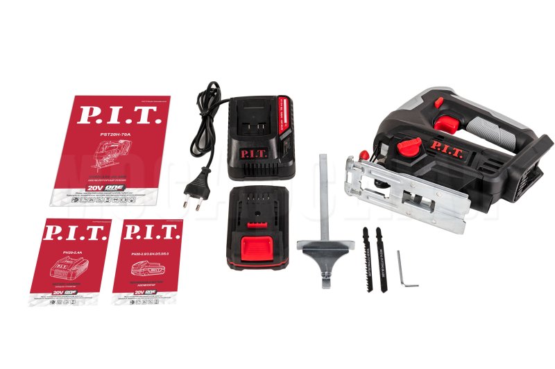 | Лобзик, пластиковый кейс, 1 аккумулятор 2 Ач, зарядное устройство, пильное полотно по дереву, пильное полотно по металлу, параллельный упор, шестигранный ключ, руководство по эксплуатации | |