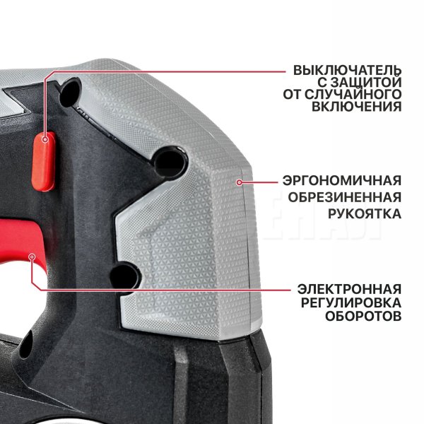 Электронная регулировка скорости от нажатия на выключатель позволяет выбрать наилучший режим работы для разных материалов