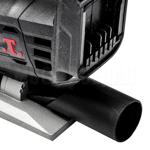 Лобзик, пластиковый кейс, зарядное устройство, 1 аккумулятор 2 Ач, пильное полотно по дереву, пильное полотно по металлу, патрубок для подключения пылесоса, параллельный упор, шестигранный ключ, руководство по эксплуатации