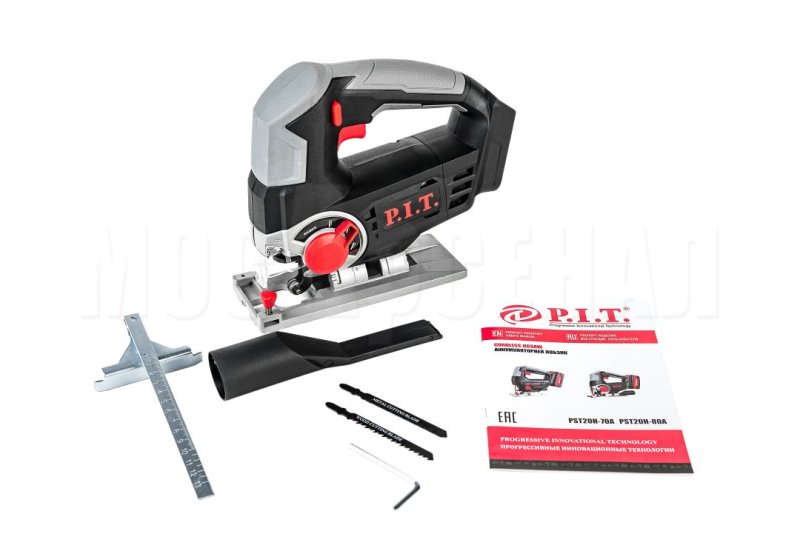 Лобзик, коробка, пильное полотно по дереву, пильное полотно по металлу, патрубок для подключения пылесоса, параллельный упор, шестигранный ключ, руководство по эксплуатации