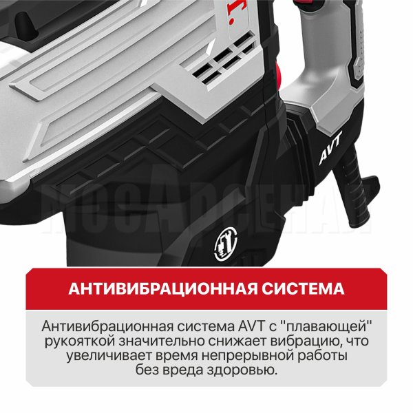 Антивибрационная система AVT с "плавающей" рукояткой значительно снижает вибрацию, что увеличивает время непрерывной работы без вреда здоровью.