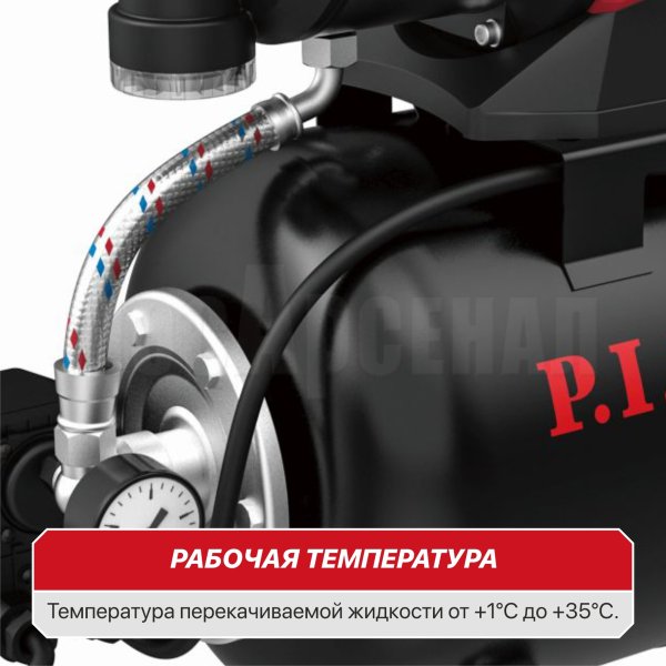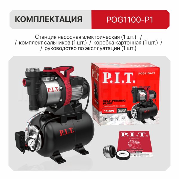Насосная станция POG1100-P1 Насосная станция предназначена для обеспечения постоянного давления чистой воды при устройстве систем водоснабжения, полива газонов и орошения садовых участков, а также для откачки воды из емкостей или водоемов. Конструкция насосной станции (полная автоматизация, редкое включение, запас воды под давлением) позволяет использовать насосную станцию в качестве экономичного, не требующего обслуживания источника постоянной подачи воды под давлением. Большие глубина забора, высота подачи воды и высокая производительность обеспечивают универсальность данной насосной станции для любого загородного дома.