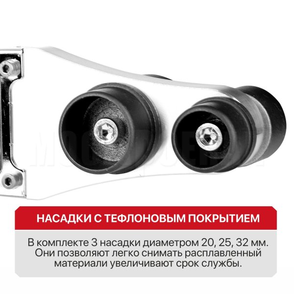 Комплектуется тремя парными насадками диаметром 20, 25, 32 мм