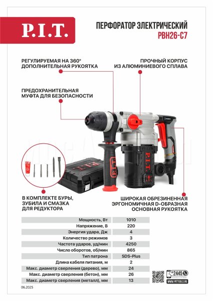 5 причин купить Перфоратор SDS-Plus сетевой P.I.T. PBH26-C7 в МосАрсенал
