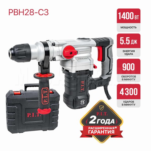 Перфоратор SDS-Plus PBH28-C3 - трёхрежимный перфоратор с вертикальным расположением двигателя для сверления различных материалов и лёгких долбёжных работ.