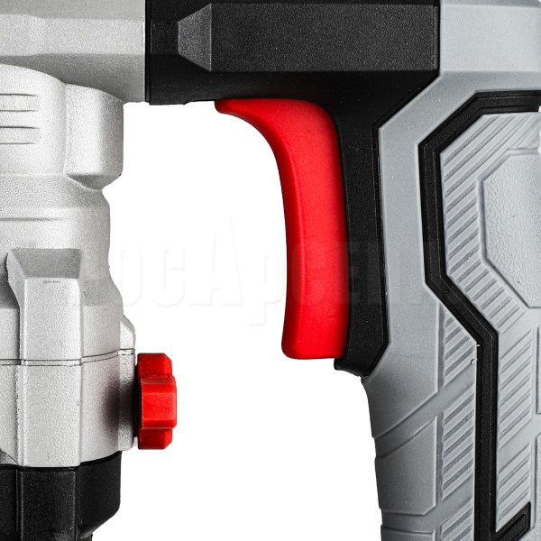 Эргономичная обрезиненная D-образная рукоятка с большим выключателем для комфортной работы и система SDS-Plus для быстрой смены оснастки.