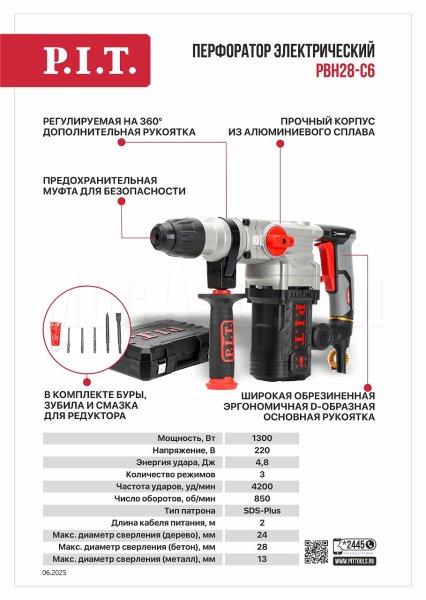 5 причин купить Перфоратор SDS-Plus сетевой P.I.T. PBH28-C6 в МосАрсенал