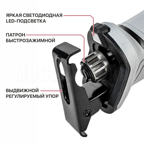 Регулировка числа оборотов осуществляется усилием на кнопку пуска. Регулируемая частота ходов помогает подобрать оптимальный режим работы для каждого материала