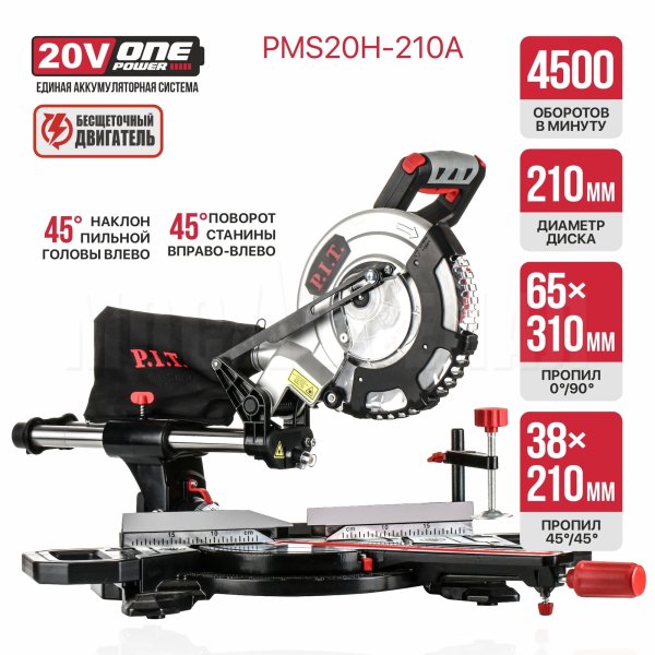 Торцовочная аккумуляторная пила PMS20H-210A предназначена для распиловки дерева, деревосодержащих композитных материалов, пластика и, при использовании соответствующего пильного диска, алюминия.