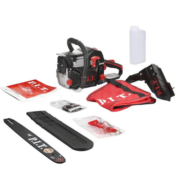 В комплект входят цепь, шина и ёмкость для приготовления топливной смеси