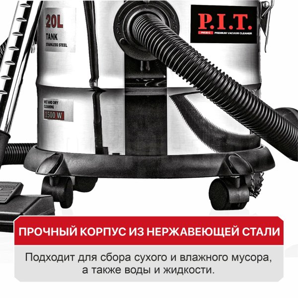 Строительный пылесос PVC20-C для уборки помещений после проведения ремонтных, производственных или строительных работ. Подходит для сбора сухого мусора - пыли, опилок, стружки, окалины и т.п., а также влажного мусора и жидкости.