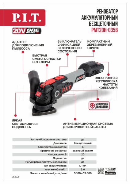 Реноватор аккумуляторный PMT20H-035B входит в семейство инструментов единой аккумуляторной системы OnePower20V. К инструменту подходят все аккумуляторы и зарядные устройства OnePower20V.