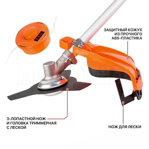 - Универсальность применения - для кошения любой травы леской или металлическим трехлопастным ножом