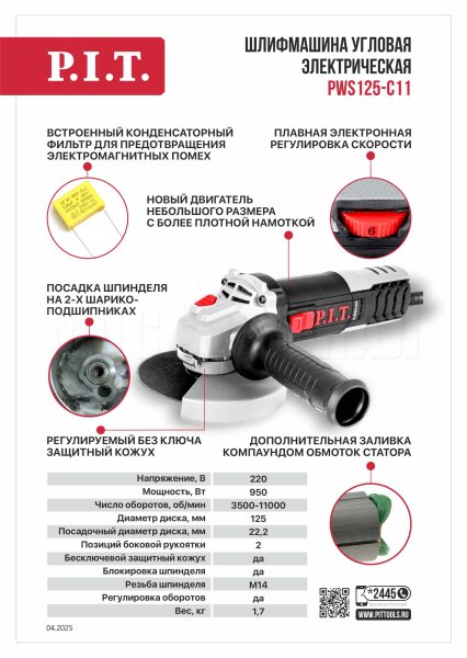 Угловая шлифовальная машина PWS125-C11 отлично справится с работами небольшого и среднего объема. Компактный размер, эргономичный обновленный дизайн корпуса и улучшенные характеристики для комфортной работы.