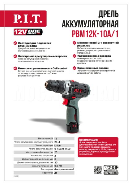 Аккумуляторная дрель PBM12K-10A/1 входит в семейство инструментов на единой аккумуляторной системе OnePower 12V. Аккумуляторы этой серии надежно защищены от перегрузок, перегрева и саморазряда. При этом быстро заряжаются и обеспечивают стабильную работу на все время использования.