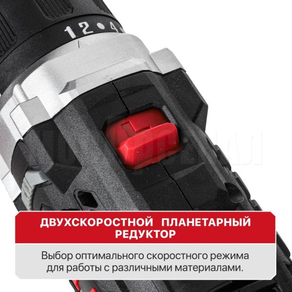 Двухскоростной планетарный редуктор позволяет использовать один инструмент, как два: дрель и шуруповерт.