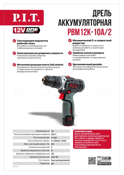 Аккумуляторная дрель PBM12K-10A/2 входит в семейство инструментов на единой аккумуляторной системе OnePower 12V. Аккумуляторы этой серии надежно защищены от перегрузок, перегрева и саморазряда. При этом быстро заряжаются и обеспечивают стабильную работу на все время использования.