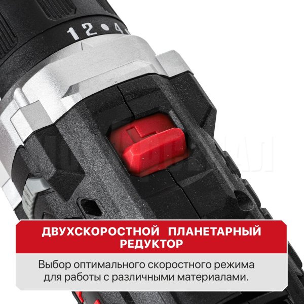 Двухскоростной планетарный редуктор позволяет использовать один инструмент, как два: дрель и шуруповерт.