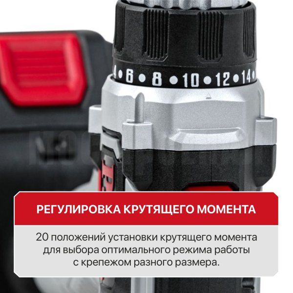 - Регулировка крутящего момента для выбора оптимального режима при работах с крепежом разного размера.