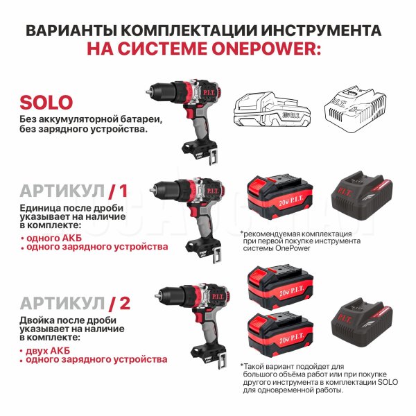 • Дрель ударная аккумуляторная бесщёточная P.I.T. PSB20H-13C/1