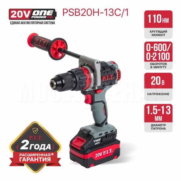Дрель ударная аккумуляторная бесщёточная P.I.T. PSB20H-13C/1
