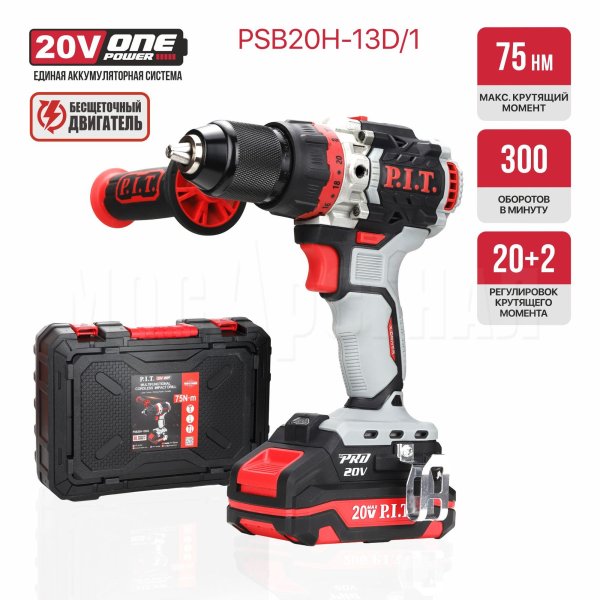Дрель ударная аккумуляторная бесщёточная P.I.T. PSB20H-13D/1