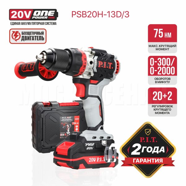 Мощная и удобная бесщеточная аккумуляторная ударная дрель PSB20H-13D/3. Удобный и производительный аккумуляторный инструмент с широким спектром применения. Благодаря двухскоростному редуктору, на первой скорости инструмент закручивает саморезы в различную поверхность, а на второй - сверлит отверстия. Бесщеточный двигатель продлевает срок службы, поэтому дрель станет отличным помощником для вашей мастерской.