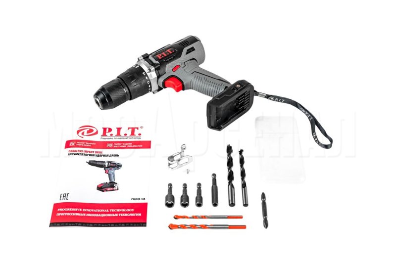 | Дрель аккумуляторная, коробка, магнитный адаптер для бит, набор сверел, магнитные торцевые головки, бита двухсторонняя, металлическая скоба, руководство по эксплуатации | |