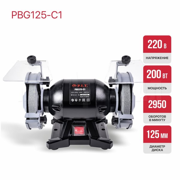 Станок точильный P.I.T. PBG125-C1 - станет отличным помощником в мастерской или гараже. Может применяться для заточки слесарного и режущего инструмента, хозяйственного инвентаря, а также шлифовки металлических заготовок.