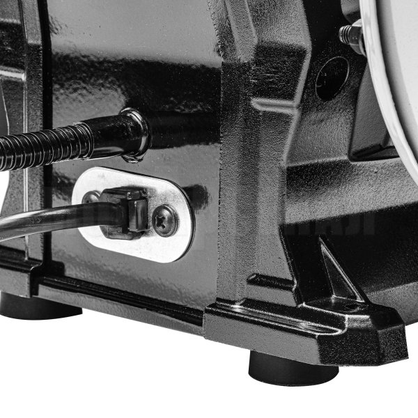 Низкая вибрация и мощное литое основание обеспечивает хорошую устойчивость при выполнении работ. Монтажные отверстия в основании позволяют закрепить инструмент на верстак.