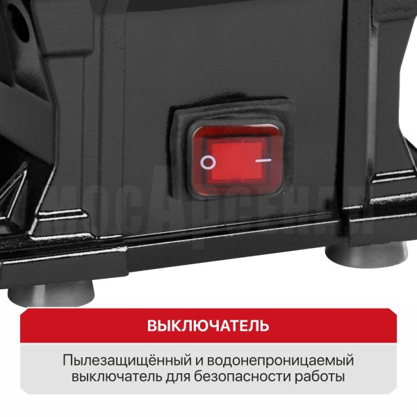 Низкая вибрация и мощное литое основание обеспечивает хорошую устойчивость при выполнении работ. Монтажные отверстия в основании позволяют закрепить инструмент на верстак.