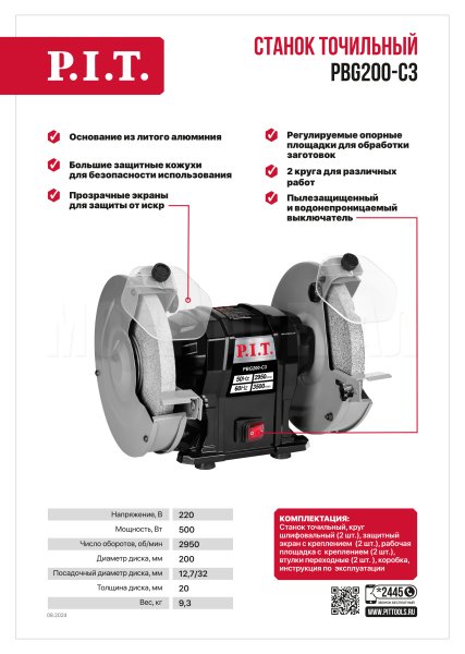Станок точильный P.I.T. PBG200-C3 - станет отличным помощником в мастерской или гараже. Может применяться для заточки слесарного и режущего инструмента, хозяйственного инвентаря, а также шлифовки металлических заготовок.