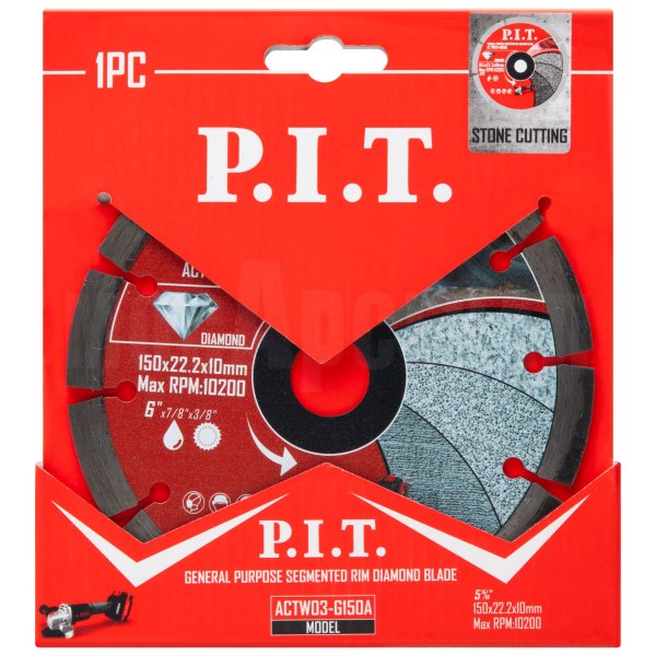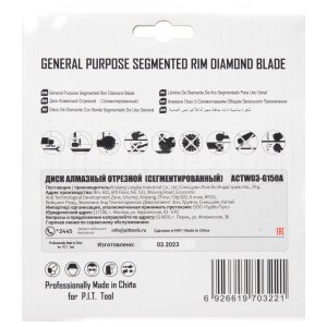 Диск алмазный сегментный ACTW03-G150A - универсальный алмазный диск общего назначения, предназначен для использования с угловыми шлифовальными машинами и может применяется для резки бетона, природного камня, бордюрного камня, кирпича, цементных блоков, тротуарной плитки и т.п.
