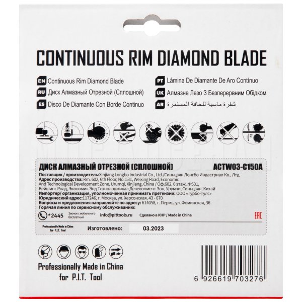 Диск алмазный сплошной ACTW03-C150A - предназначен для использования с угловыми шлифовальными машинами и может применяется для резки керамики и керамической плитки.