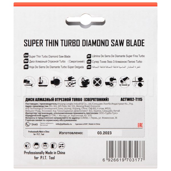 Диск алмазный Turbo ACTW02-T115 - предназначен для использования с угловыми шлифовальными машинами и может применяется для резки бетона, камня, керамргранита, кирпича.