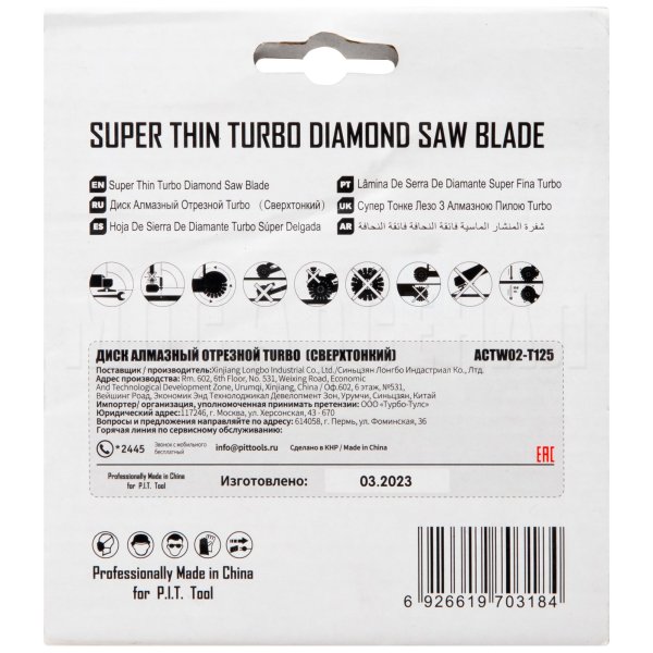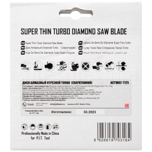 Диск алмазный Turbo ACTW02-T125 - предназначен для использования с угловыми шлифовальными машинами и может применяется для резки бетона, камня, керамргранита, кирпича.