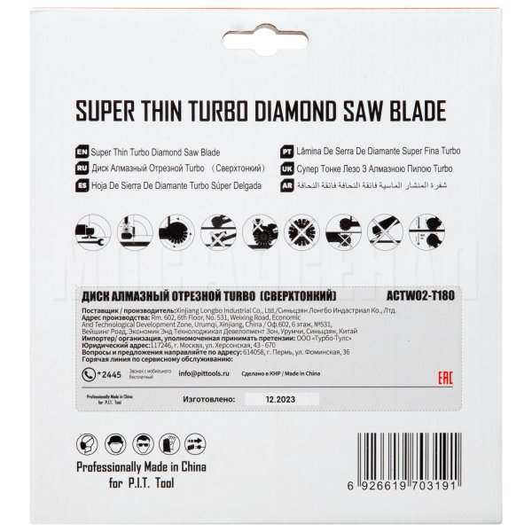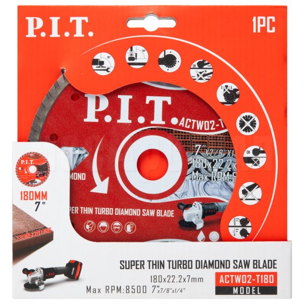 Диск алмазный Turbo ACTW02-T180 - предназначен для использования с угловыми шлифовальными машинами и может применяется для резки бетона, камня, керамргранита, кирпича.