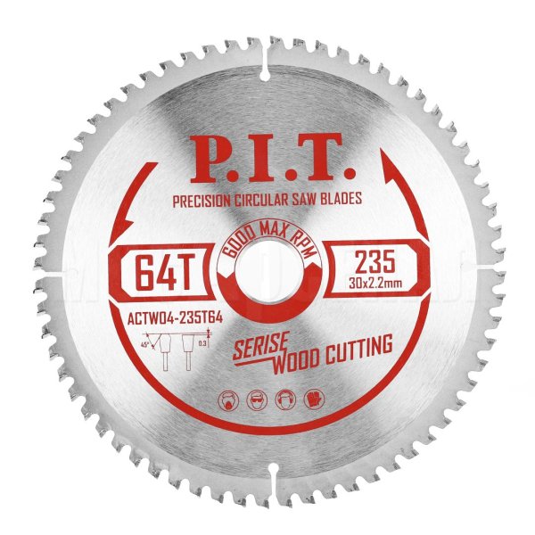 Диск пильный с твердосплавными напайками по дереву для циркулярных и торцовочных пил ACTW04-235T64 отличный вариант для раскроя досок, плитных материалов из деревосодержащих композитов (ДСП, OSB, фанеры и т.д.).