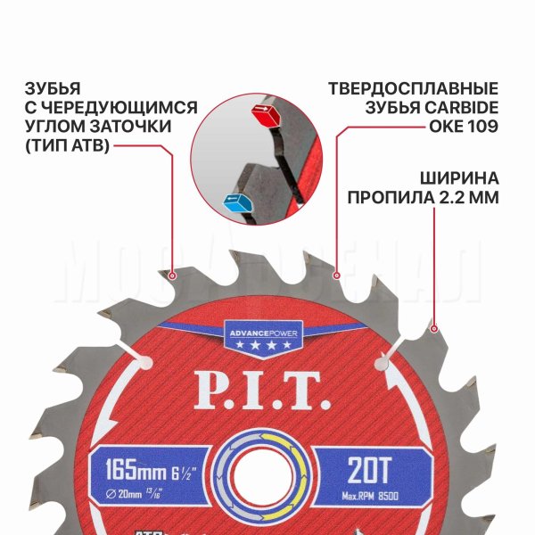 Острые твердосплавные зубья с чередующимся углом наклона обеспечивают высокую скорость резания, аккуратный срез и подходят для поперечного и продольного чистого реза твёрдой и мягкой древесины.