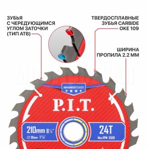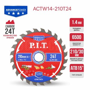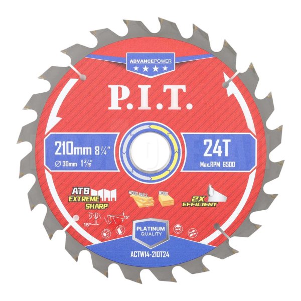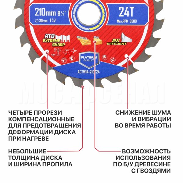 Диск пильный с твердосплавными напайками по дереву для циркулярных и торцовочных пил ACTW14-210T24 отличный вариант для распила древесины, досок, многослойных плит, древесностружечных плит (ДСП, OSB, фанеры и т.д.).