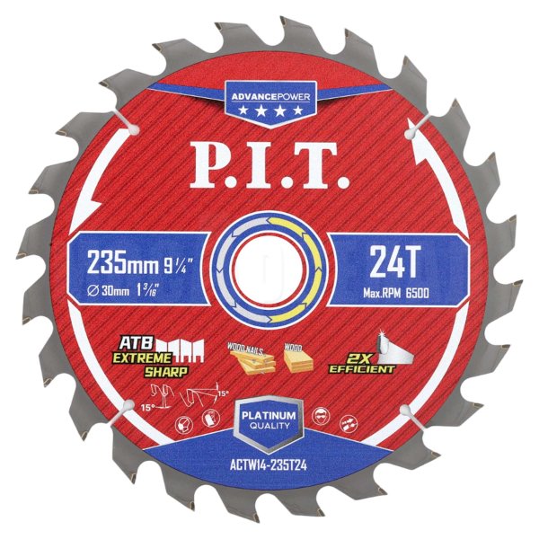 Диск пильный с твердосплавными напайками по дереву для циркулярных и торцовочных пил ACTW14-235T24 отличный вариант для распила древесины, досок, многослойных плит, древесностружечных плит (ДСП, OSB, фанеры и т.д.).