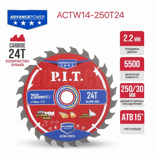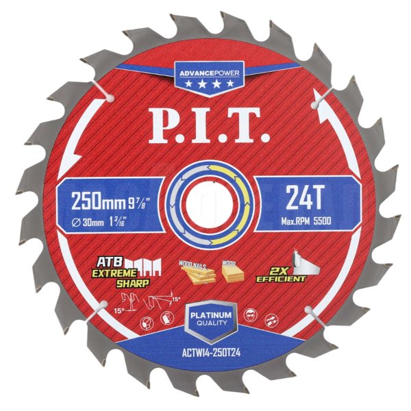 Диск пильный с твердосплавными напайками по дереву для циркулярных и торцовочных пил ACTW14-250T24 отличный вариант для распила древесины, досок, многослойных плит, древесностружечных плит (ДСП, OSB, фанеры и т.д.).