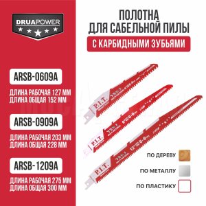 Универсальное пильное полотно для сабельных пил ARSB-0609A серии DRUA идеально подходит для работ по различным материалам - черным и цветным металлам, твердым породам дерева и пластику.